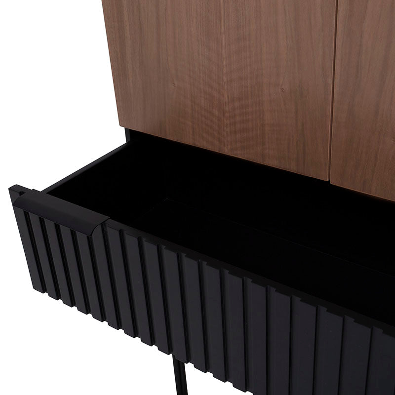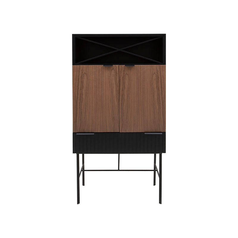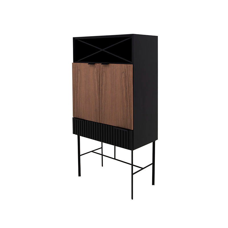 Añade un toque sofisticado a tu espacio con el Mueble para Bar Jess tipo hutch. Su fabricación en madera industrializada, madera de pino y chapa de nogal asegura calidad y estilo. Las jaladeras y patas metálicas le dan un aspecto moderno y elegante. Con este mueble, disfrutarás de un rincón de bar completo en tu hogar, listo para recibir a tus invitados con estilo.