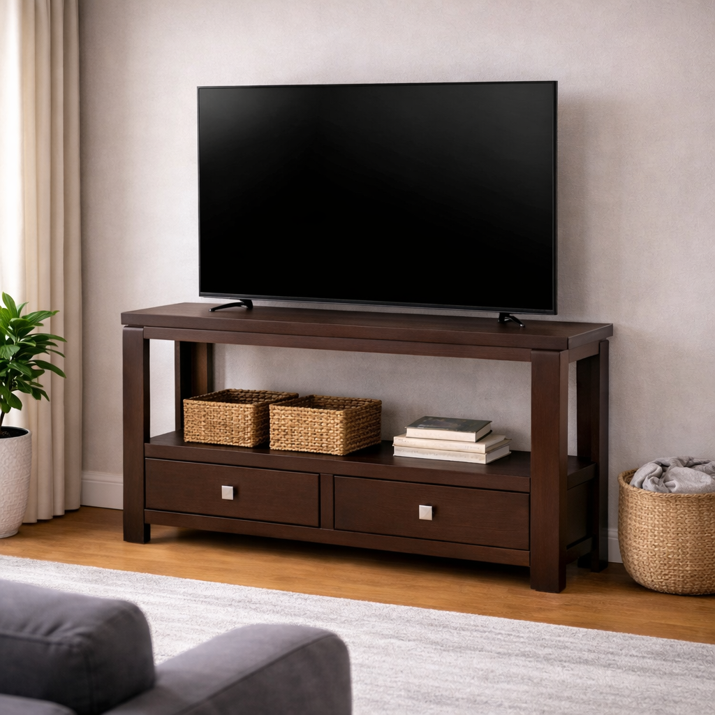 El Mueble para TV Bruselas es la pieza ideal para crear un espacio de entretenimiento elegante y ordenada con un estilo clásico atemporal. Elaborado en madera industrializada laqueada, su diseño sólido y sofisticado aporta presencia y equilibrio visual a tu espacio. Sus dos cajones integrados permiten organizar dispositivos y accesorios electrónicos, manteniendo tu área de entretenimiento limpia y funcional. Un mueble resistente, práctico y con acabados que elevan la estética de tu hogar.