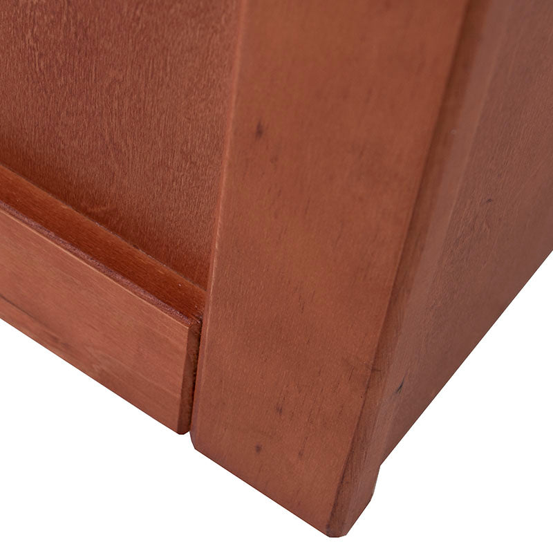 Fabricado con madera de pino y madera industrializada en un cálido acabado nogal, esta pieza ofrece resistencia y durabilidad sin perder el encanto de un estilo sofisticado.