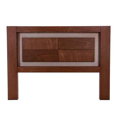 La cabecera King Size México, elaborada en chapa de okume color mandarina con detalles en beige y luz de lectura integrada, aporta estilo y comodidad, convirtiéndose en el centro visual y funcional de tu dormitorio.