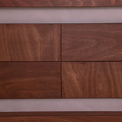 Los dos burós México, también en chapa de okume color mandarina, complementan el conjunto con su diseño contemporáneo y práctico, ofreciendo espacio suficiente para mantener tus objetos personales organizados mientras realzan la estética de tu habitación.