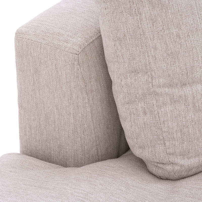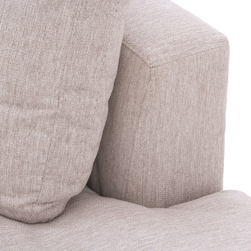 Tapizada en tela de tejido plano de alta calidad, ofrece una textura suave y un confort excepcional, ideal para compartir momentos en familia o disfrutar de un descanso absoluto.