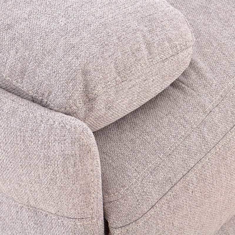 Su diseño moderno, con tapizado en tela gris de alta calidad, aporta un estilo contemporáneo que realza cualquier sala.