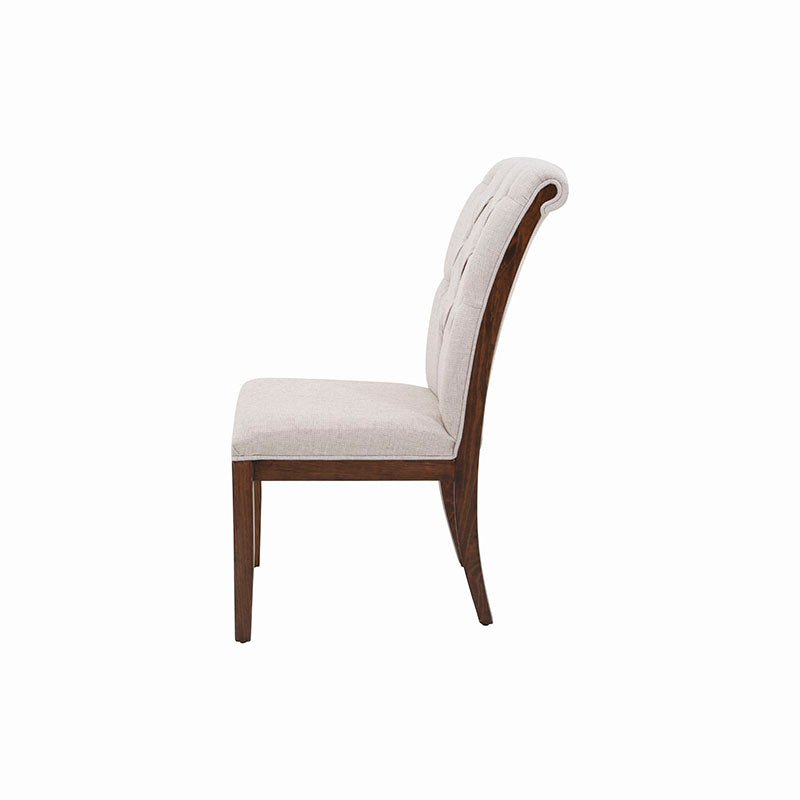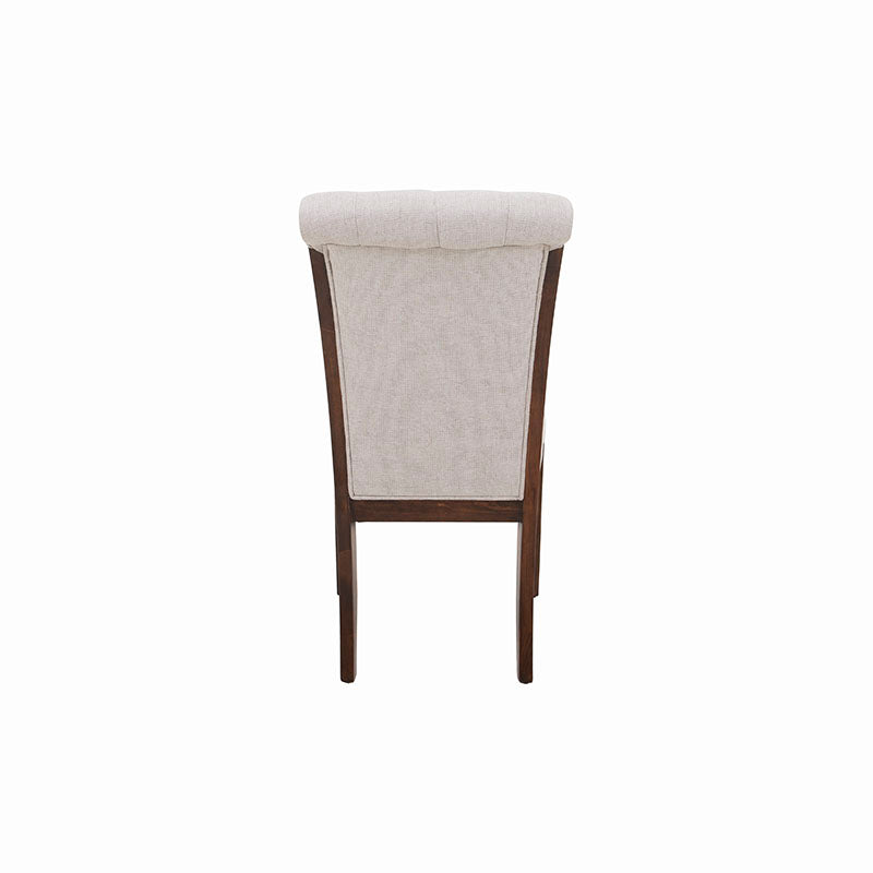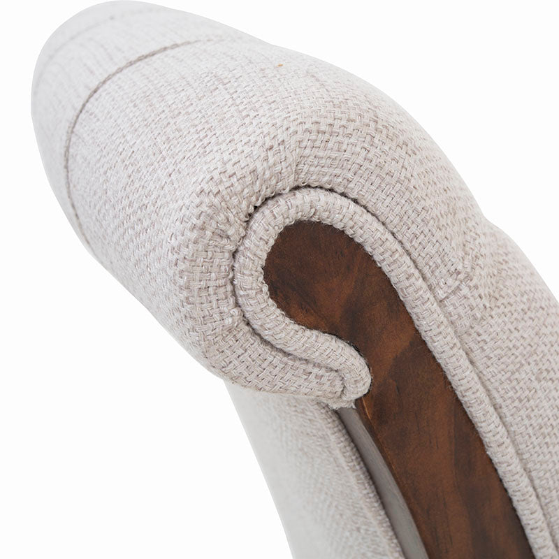 Su tapizado en tela de tejido plano color beige aporta un toque cálido y versátil, ideal para crear un ambiente acogedor en tu comedor o sala.