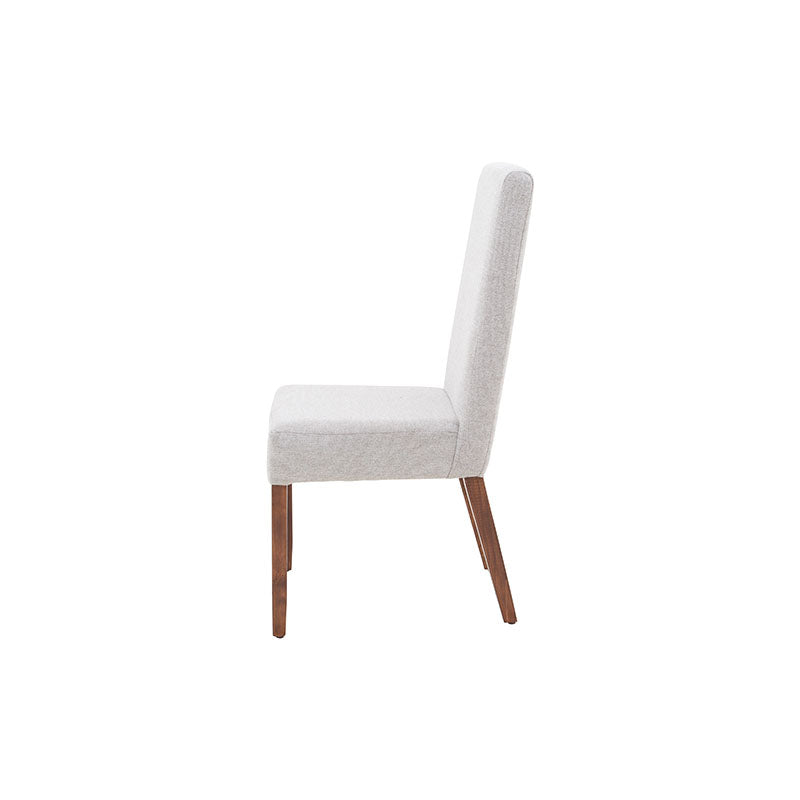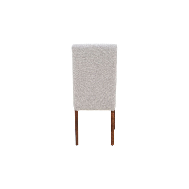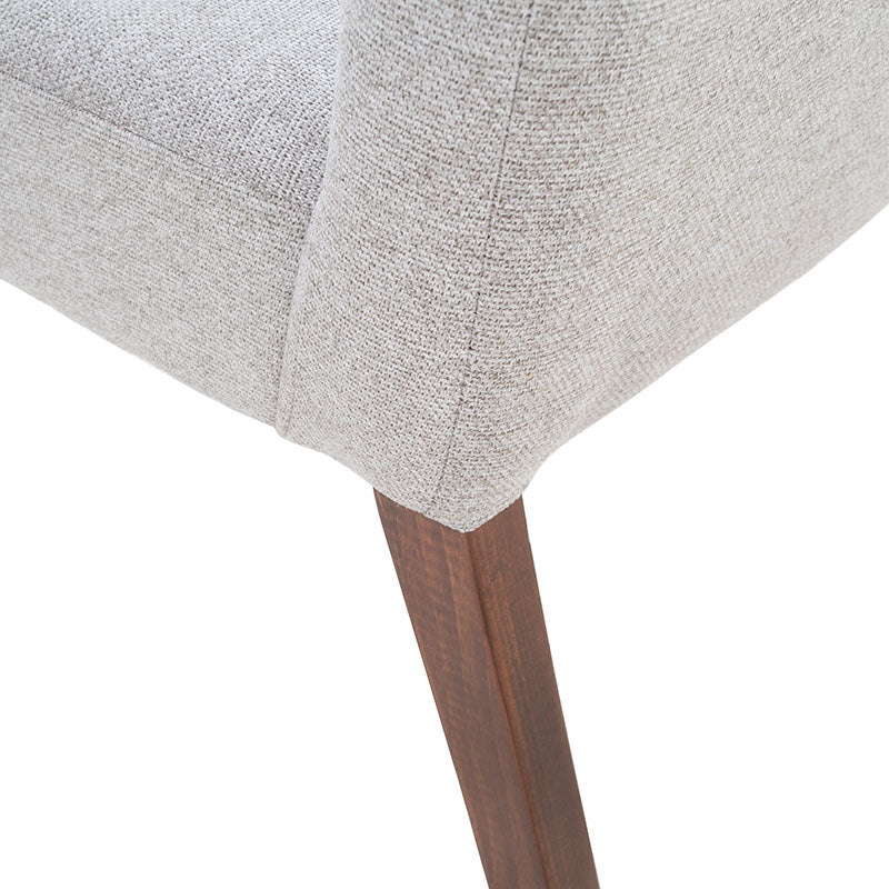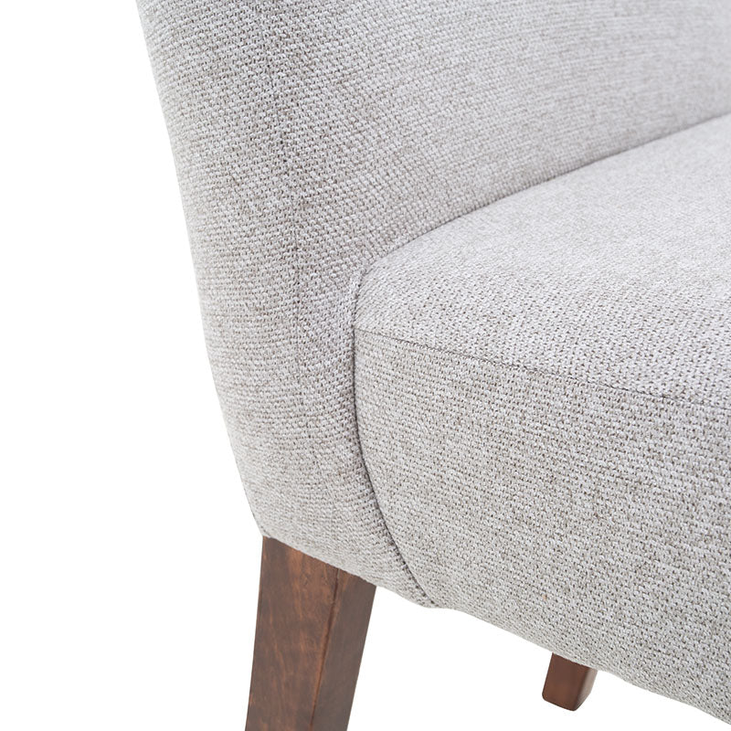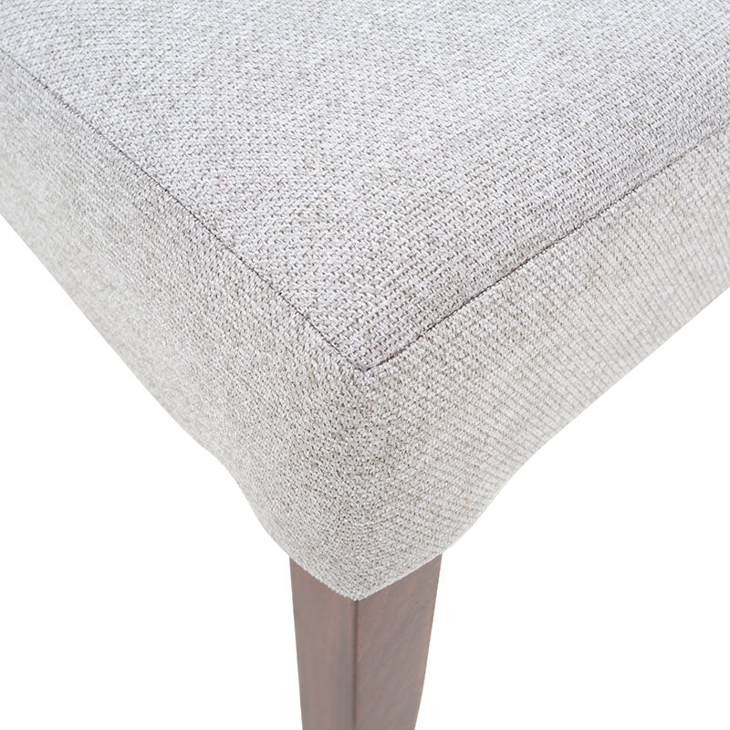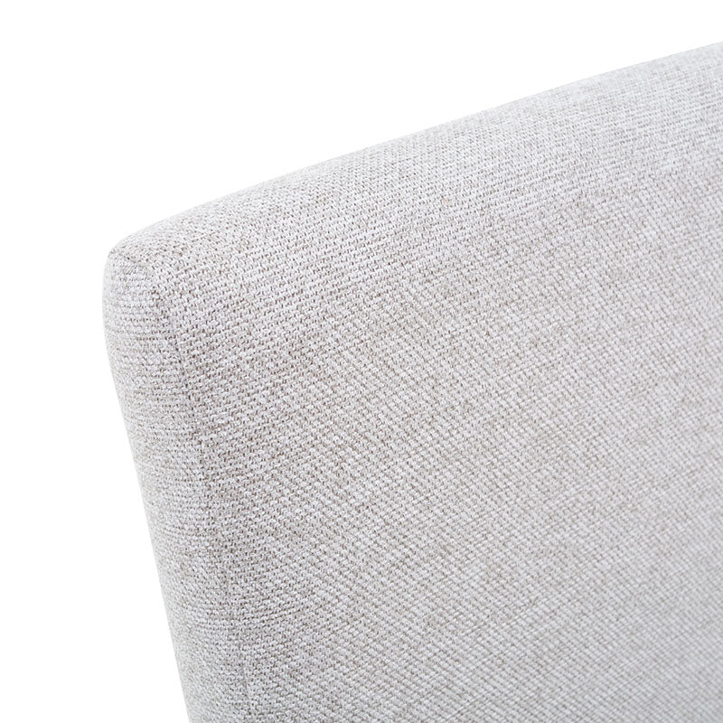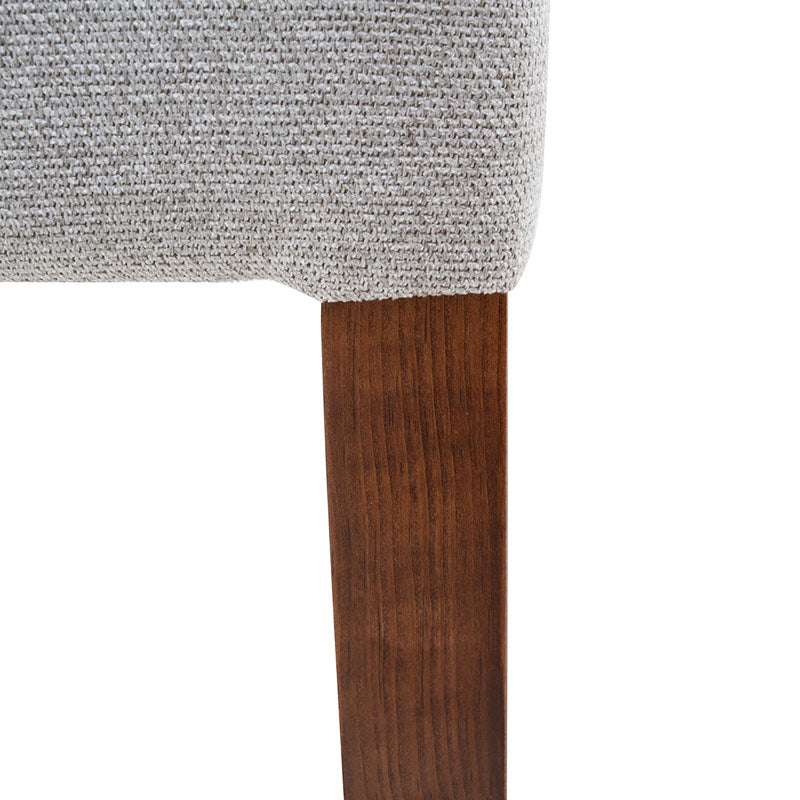 Su tapizado en fina tela tipo lino color gris aporta suavidad y sofisticación, mientras que la estructura de madera de pino en tono nogal garantiza resistencia y durabilidad.