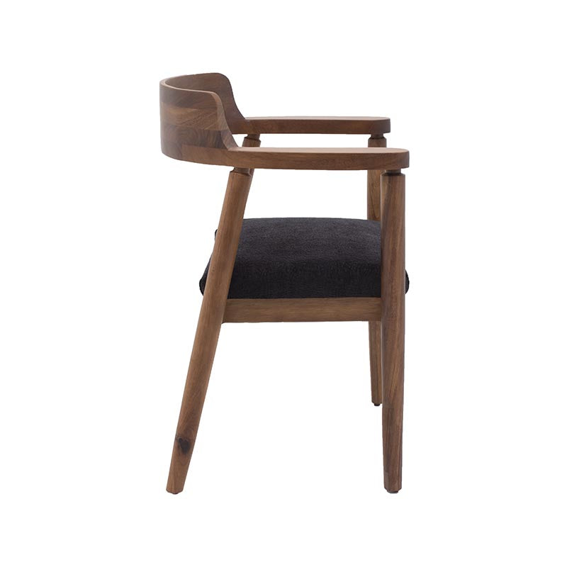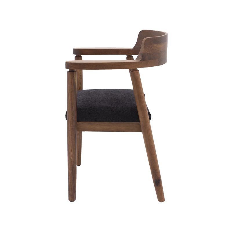 La silla Montecarlo combina elegancia contemporánea y materiales de alta calidad para complementar comedores sofisticados. Su estructura de madera sólida de parota aporta resistencia y carácter natural, mientras que su asiento acolchado y tapizado en tela ofrece comodidad y estilo. Su diseño refinado la convierte en una pieza ideal para comedores modernos que buscan equilibrio entre funcionalidad, durabilidad y estética.