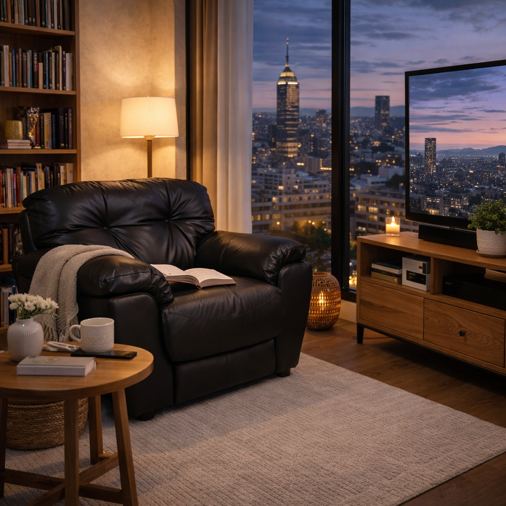 Tapizado en piel y leather touch color moka, este sillón destaca por su textura suave, elegante y fácil de mantener, aportando una sensación premium que realza la decoración de tu sala, estudio o área de descanso.